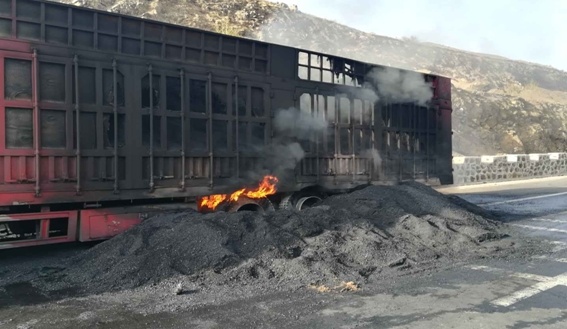 4月25日早6:35時(shí),運(yùn)煤專線K117公里處發(fā)生一起車輛自燃事故。起火原因是司機(jī)在坡度較大的運(yùn)煤專K104-K120段采取制動(dòng)措施不當(dāng)導(dǎo)致輪胎起火,引燃車廂貨物。