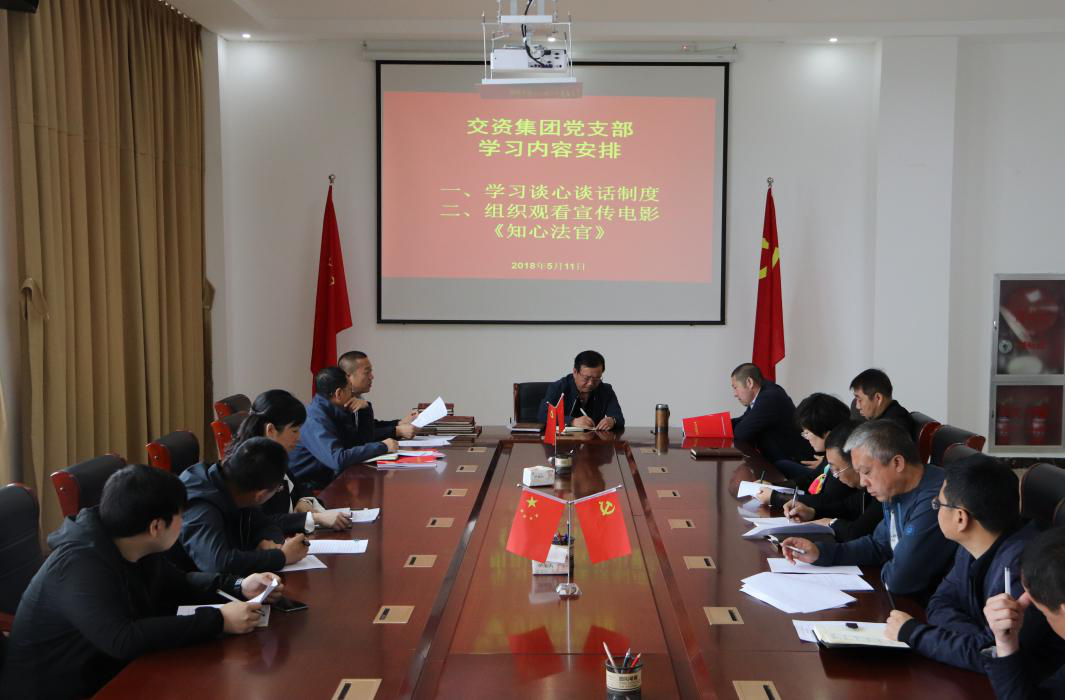 2018年5月11日,交資集團(tuán)黨支部組織開展對(duì)“談心談話制度”的學(xué)習(xí)。會(huì)議由專職副書記張志同志主持,我集團(tuán)公司全體黨員干部和入黨積極分子參加了此次學(xué)習(xí)。