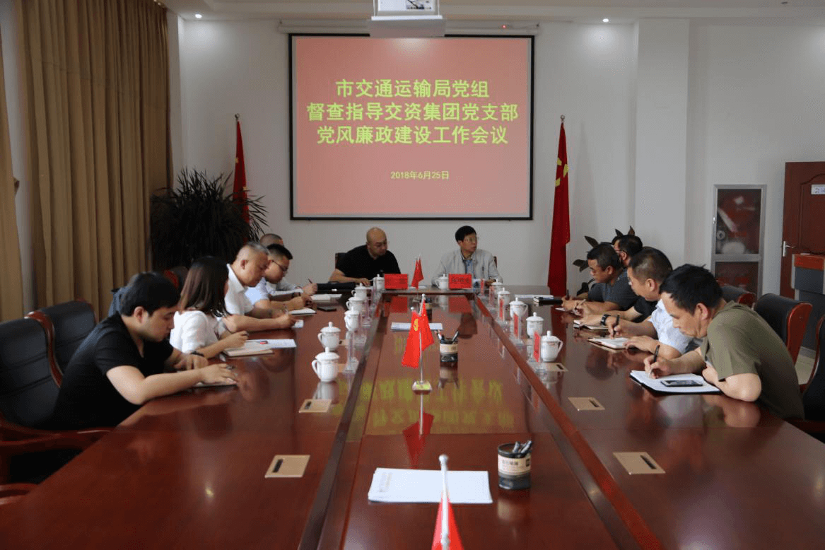 6月25日下午,市交通運(yùn)輸局黨組成員高明光副局長(zhǎng)帶領(lǐng)市交通局督查人員張波蒞臨我集團(tuán)公司,督查指導(dǎo)交資集團(tuán)黨支部2018年第二季度黨風(fēng)廉政建設(shè)工作并在交資集團(tuán)召開(kāi)相關(guān)會(huì)議,交資集團(tuán)黨支部書(shū)記張慶喜、副書(shū)記韓中淵、各分子公司、各部室負(fù)責(zé)人參加會(huì)議。