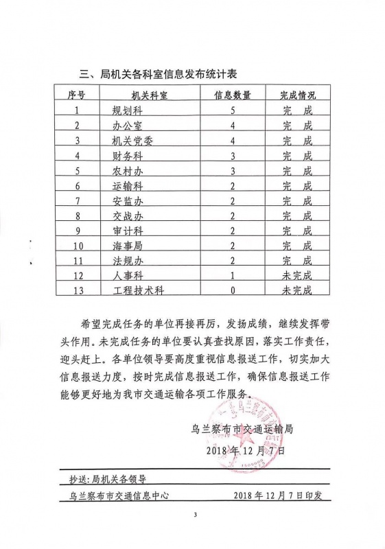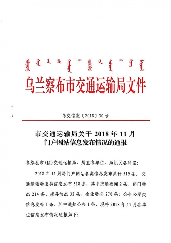 市交通運輸局關于2018年11月門戶網站信息發(fā)布情況的通報