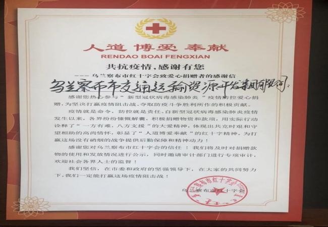 疫情阻隔了空間的距離,卻阻擋不了愛心的匯聚,8月10日,烏蘭察布市交通運輸資源開發(fā)集團有限公司積極履行社會責(zé)任,勇伸援助之手,發(fā)動全集團7家公司、9個建管辦、37家參建單位募捐,累計捐款102810元,用實際行動支援疫情防控第一線,奏響“戰(zhàn)疫”同心樂章。