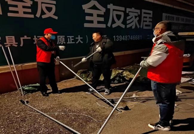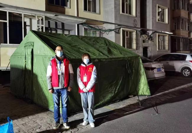 暖心帳篷的搭建,改善了一線人員的工作環(huán)境,幫助值班值守人員抵御低溫寒冷天氣,確保小區(qū)值守工作有序進(jìn)行。