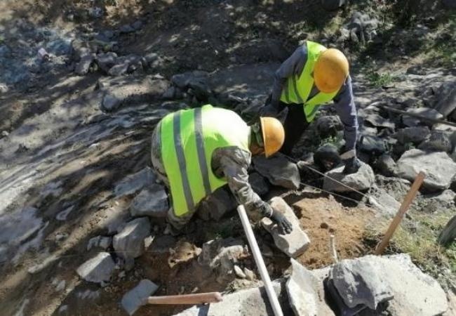 為保障修復(fù)工作高效開展,養(yǎng)護(hù)人員對錐坡進(jìn)行了認(rèn)真地勘察,做了詳細(xì)的損毀程度和位置統(tǒng)計(jì),并根據(jù)實(shí)際情況確定了維修方案。在修復(fù)過程中,施工隊(duì)伍嚴(yán)格按照《公路養(yǎng)護(hù)技術(shù)標(biāo)準(zhǔn)》進(jìn)行作業(yè),對錐坡塌陷處進(jìn)行坡面重砌,嚴(yán)格保證施工質(zhì)量。目前已完成運(yùn)煤專線錐坡重砌修復(fù)工作。